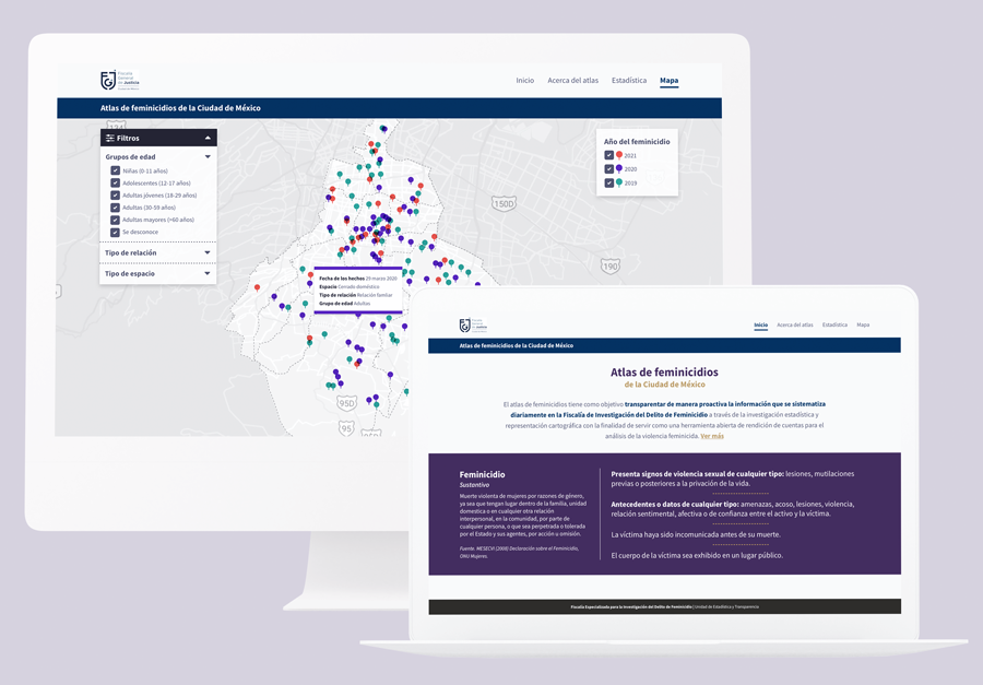 UI/UX | Herramienta geográfica que busca contribuir al estudio y concientización relacionada a la incidencia del delito de feminicidio.